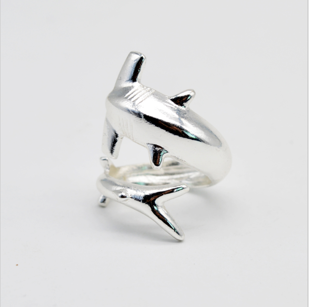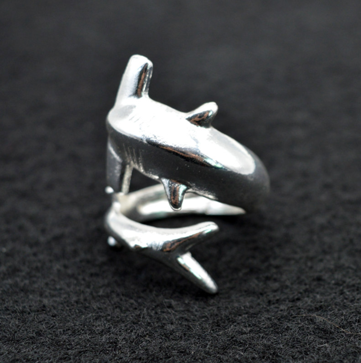 The ultimate ring for shark lover : a zinc ring made in the shape of a realistic hammerhead shark that wraps around your finger !